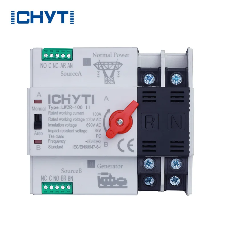 Pabrik China ICHYTI 100amp panguripan otomatis Otomatis cocog kanggo sistem pasokan darurat kanthi rating 400V lan 100A AC ing 50 utawa 60Hz. Desain kompak, fungsi transfer sing dipercaya, gampang instalasi lan perawatan, lan umur dawa nggawe pilihan sing populer. 100 saklar transfer otomatis otomatis cocog kanggo macem-macem aplikasi ing ngendi sumber daya sing terus penting lan bisa dioperasikake kanthi listrik lan kanthi manual. Siri Lw2R 100amp Transfer Otomatis Lw2r cocog karo syarat IEC60947-6-1 kanggo switchgear fuckgear sing kurang-voltage lan gear kontrol.