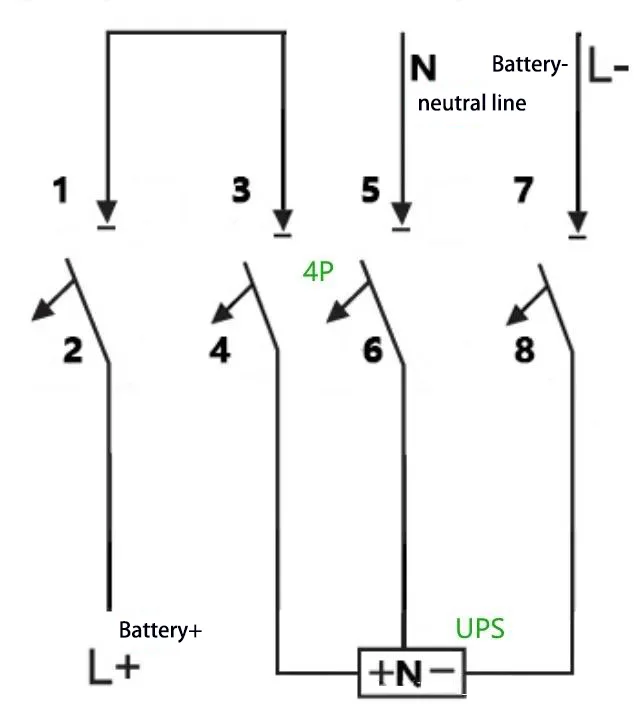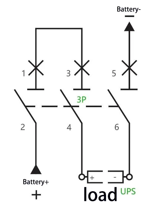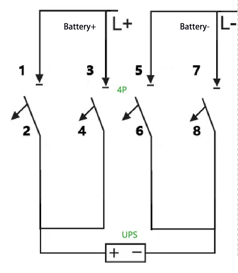Ing konfigurasi sistem sumber daya UPS, pemutus sirkuit DC nindakake fungsi dual isolasi lan proteksi arus luwih kanggo sirkuit baterei. Jinis-jinis sumber daya UPS sing beda-beda cocog karo voltase lan arus sing dirating baterei, saengga mbutuhake adaptasi pemutus sirkuit DC kanthi jumlah kutub sing beda. Artikel iki bakal rinci macem-macem cara wiring saka 1P / 2P / 3P / 4P DC pemutus sirkuit Applied ing sistem UPS.