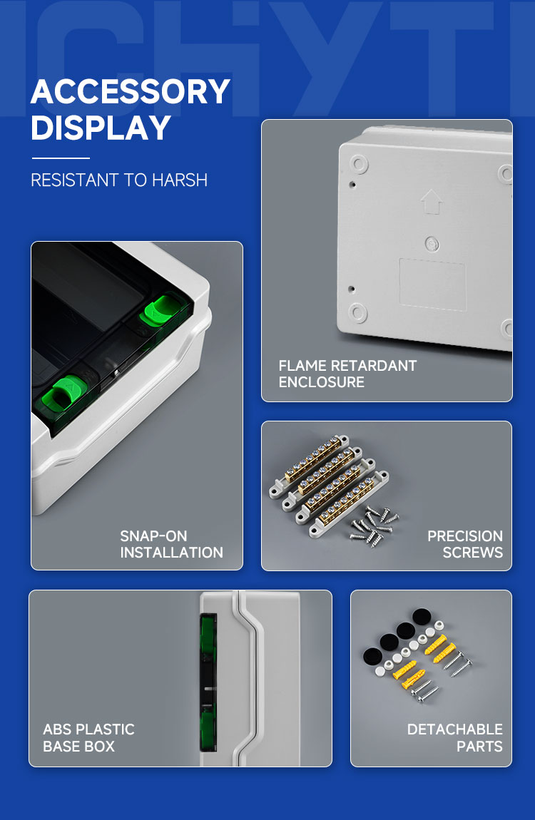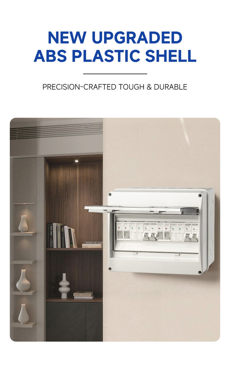 Dilengkapi rel DIN sing dipasang ing pabrik. Ora ana pengeboran utawa kit pemasangan tambahan sing dibutuhake. Instal MCB, RCD, utawa surge protector ing sawetara detik.